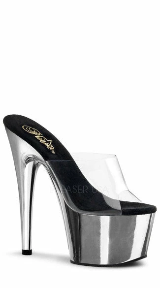Keep it simple in this slide on 7 inch stiletto heel with platform. Designed for style and comfort with a thick toe strap.