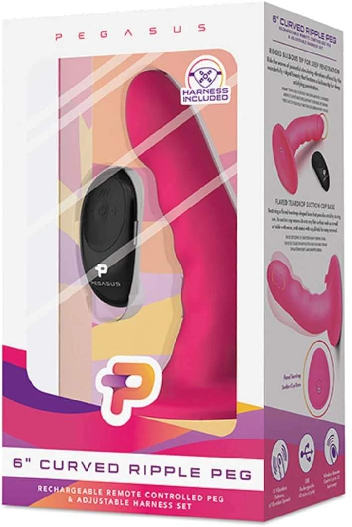 - The Pegasus 6″ Curved Ripped Peg is harness-compatible for effortless strap-on sex and pegging