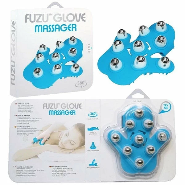 Our massage glove features nine 360° rolling balls that contour to the body’s curves. Soothes sore muscles and provides stress & tension relief. The Fuzu™ Glove stimulates the entire body and can be used with or without massage lotions or oils. Separate thumb and pinky pad applies added pressure to specific areas. Rubber nubs on the inside of the glove provide additional relief and control. Fuzu™ Glove comes with an adjustable strap to ensure everyone will benefit from some well-deserved TLC. Massaging away fatigue and feeling revitalized is now just in the palm of your hand.