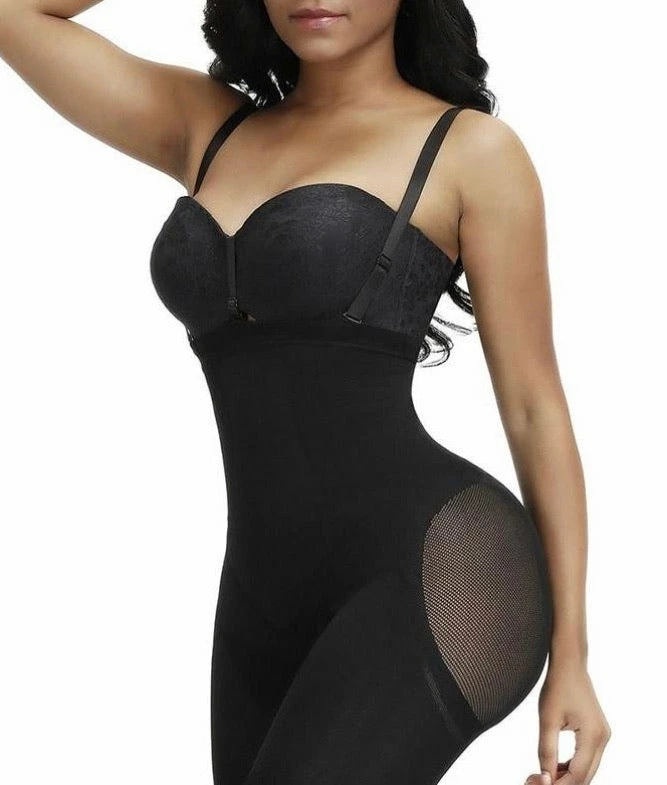 Transform your figure with our best-selling seamless light compression body shaper! With a mid-thigh length, this great design helps you look smooth while slimming your core and thighs. The mesh butt area gives you breathability while helping to lift and keep you comfortable.