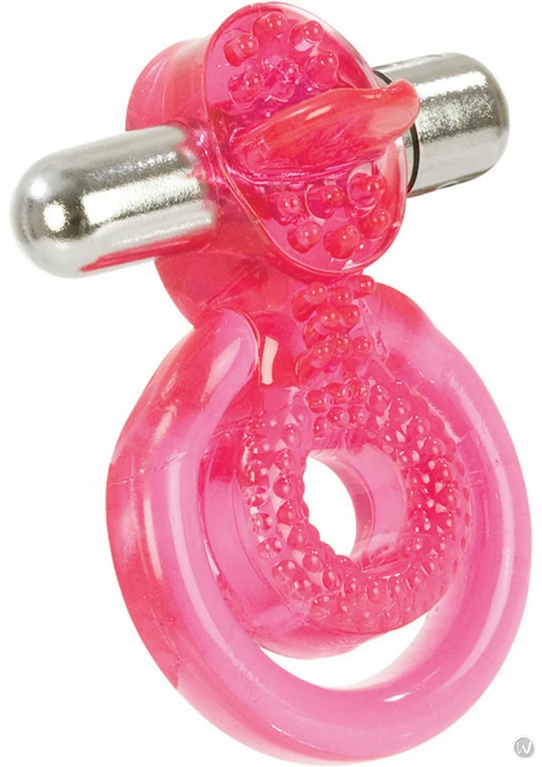 Share the ecstasy with the 3-speed Dual Clit Flicker. The erection enhancer offers maximum dual support for him, and tantalizing clitoral stimulation pleasure for her. The easy to use, stretchy ring is supplied with a removable and reusable vibrating bullet shaped stimulator for a memorable experience. The Dual Clit Flicker is made from super soft and ultra-stretchy unscented TPR. The ring provides dual erection support and includes a textured cock ring and a larger pliable ring that secures around the scrotum. The pleasure-nubbed teaser boasts erotic flickering tongue action for an intense clitoral stimulation adventure. The micro bullet stimulator delivers power-packed vibrations and can also be used independently. Ideal for first time and experienced users, the Dual Clit Flicker enhances adult playtime fun. Slip on the stretchy, comfortable to wear dual ring support for a peak performance that never ends. Use with a water-based lube . Before and after every use, clean the erection keeper ring with a toy cleaner spray, or wash in mild soapy water.