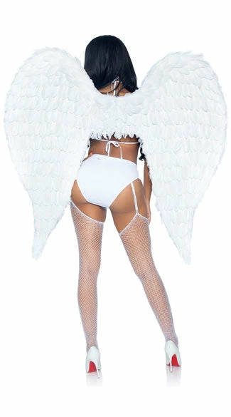 The bigger the wing the closer to heaven! Attract all the attention with these stunning Deluxe Feather costume wings featuring 43-inch feather wings and elastic shoulder straps. (Wings only)