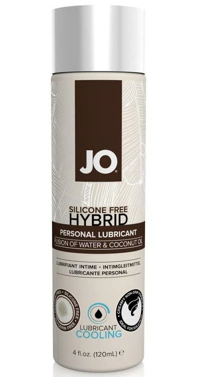 System JO Silicone Free Hybrid Personal Lubricant line JO Hybrid Lube water based and coconut infused. Great for solo play, with a sex toy and with a partner. Lubricant features paraben free, silicone free and glycerin free formula.