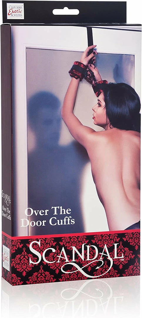 - ENHANCE ECSTASY: Indulge in sexy submissive play with the luxurious Scandal Over the Door Cuffs; These plush cuffs ignite primal desires while the heavy-duty universal clasps and adjustable over the door restraint holds you tightly