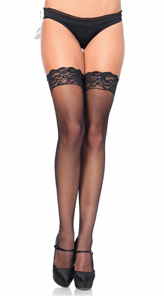 These micro fishnet thigh highs feature a scalloped stay-up lace top. (Panty not included.)