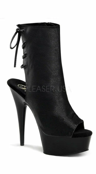 Enjoy a 6 inch heel with open toe and back ankle boot. Features a side zip, and back lace up which makes it a cinch to wear.