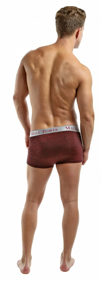 Mini short with paneled pouch, hi cut legs, low rise waist, plush elastic branded waistband.