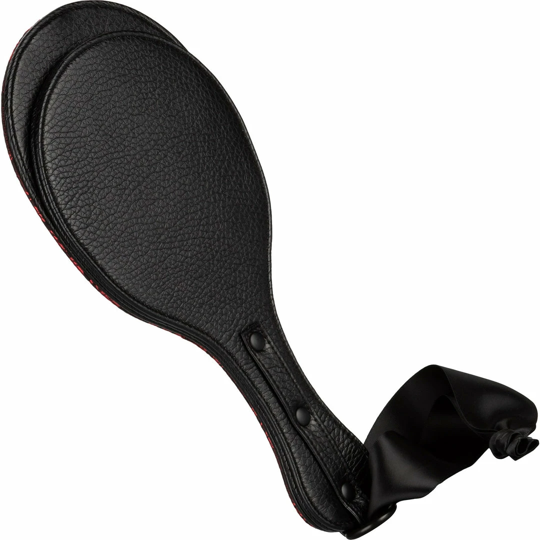 For the nights you’re feeling extra naughty, experience the indulgent taps of the Scandal® Round Double Paddle. Effortlessly plant stinging taps on your submissive with the plush dual-layer paddle and sturdy handle. Punishment and pleasure go hand in hand with the dual paddle with an edgy leatherette interior and silky brocade exterior. The sub in your love will love each stinging spank of this sturdy double-stitched paddle and obey your every command as the dual paddle delivers powerful clapping slaps.