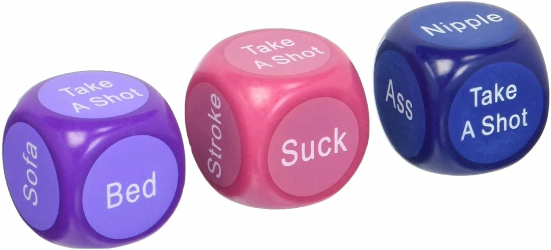 - Contains three 6-sided dice that includes a pink dice with actions, a blue dice with body parts, and purple dice with locations on it, so it’s easy to incorporate it into foreplay.