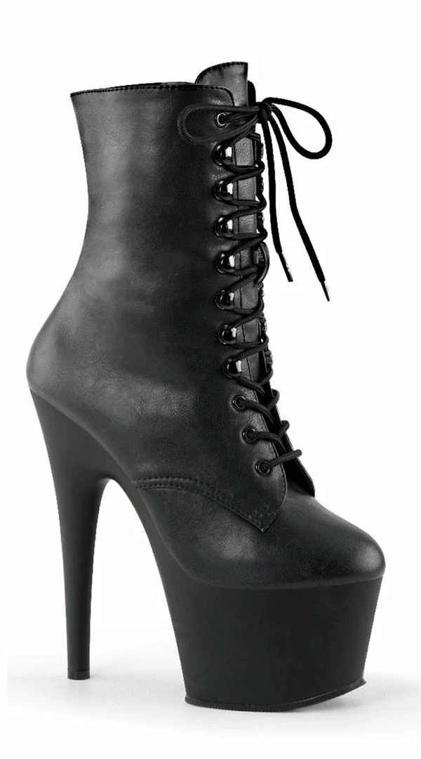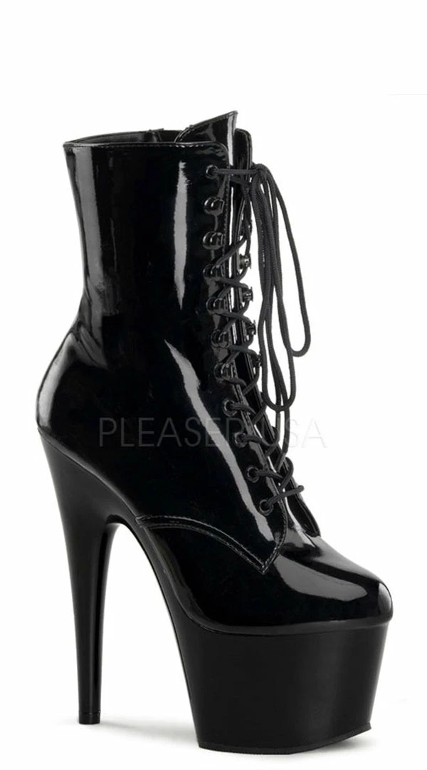 These sexy ankle boots feature a lace-up front, 7 inch stiletto heel, and a full inner side zipper.